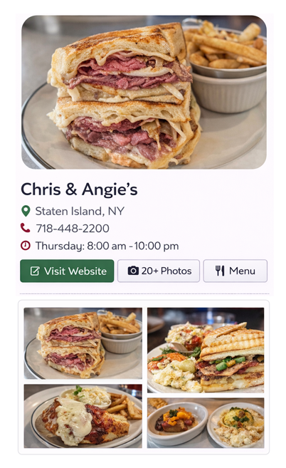 Attract customers searching for "Restaurants Near Me", City & Area dining Guides. Increase Exposure. Build Direct Customers.